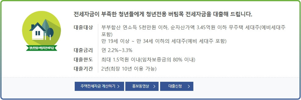 청년 버팀목 전세자금대출은 기본적으로 청년 무주택자를 대상으로 하는 정책 금융상품입니다.