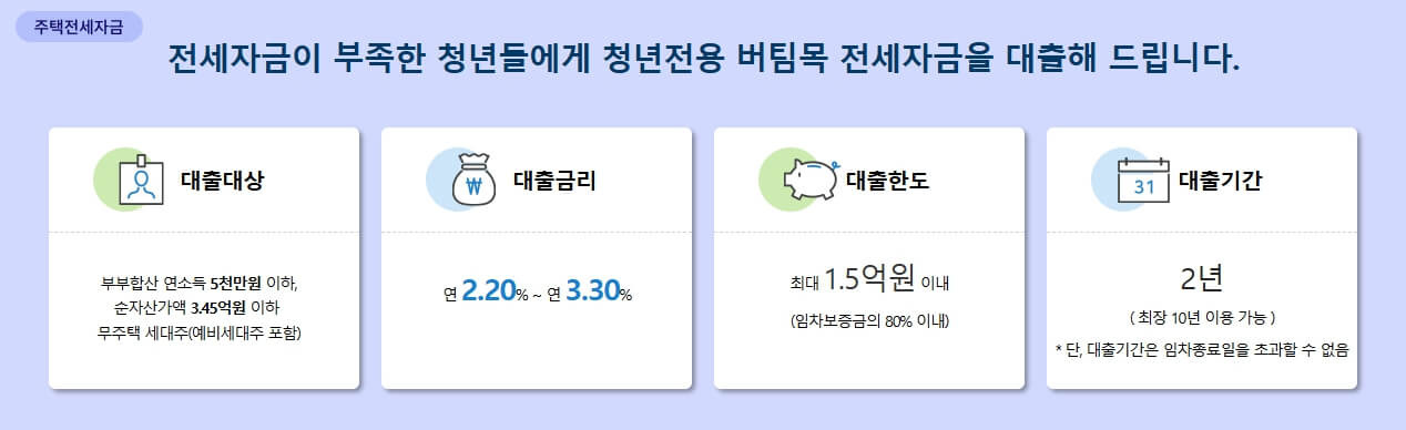 청년 버팀목 전세자금대출을 신청하려면 연령, 소득, 자산, 주택 조건을 모두 충족해야 합니다. 아래 조건을 충족해야 대출 신청이 가능합니다.