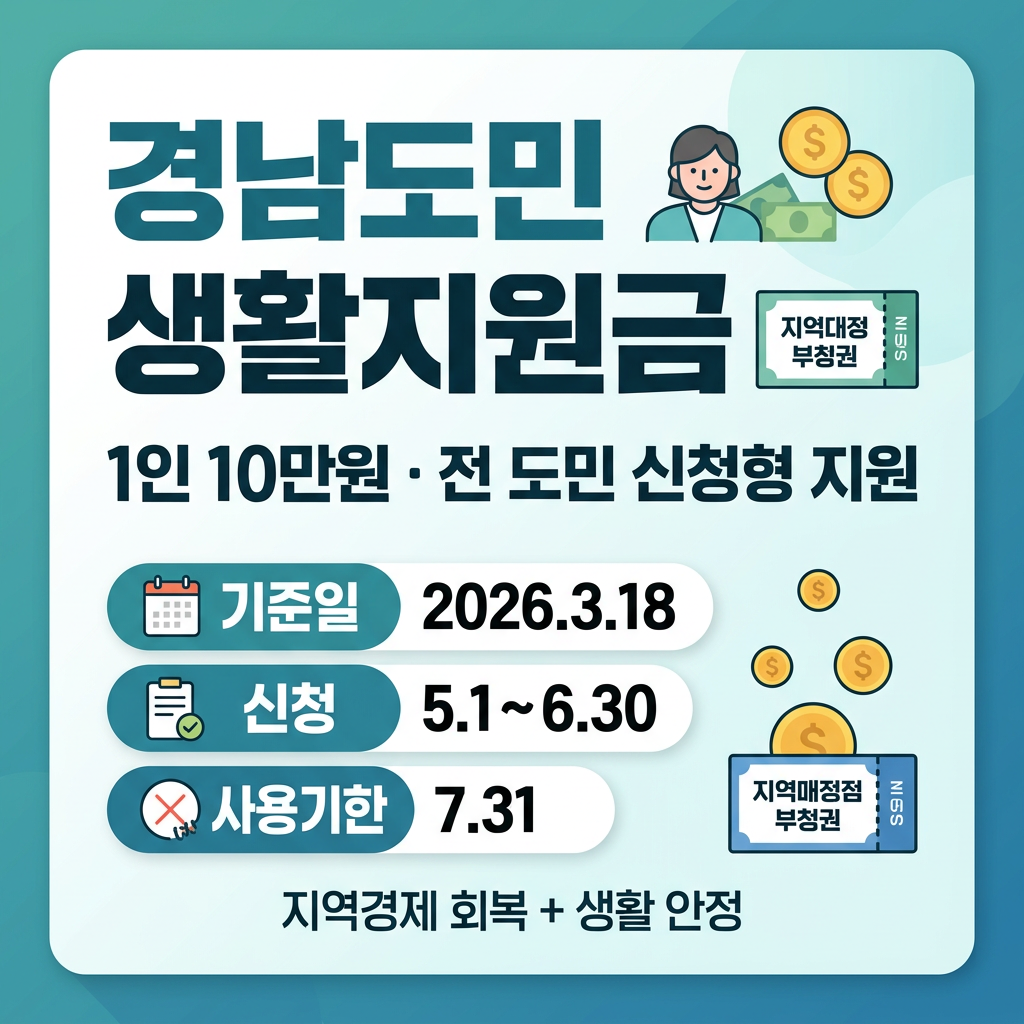 경남 도민생활지원금, 아직도 신청 방법을 모르고 있다면 손해입니다. 2026년 전 도민에게 10만 원이 지급되지만 기간과 조건을 놓치면 받을 수 없습니다. 지금 반드시 확인해야 할 핵심 정보를 정리했습니다.