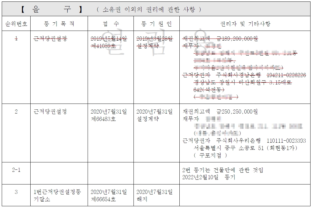 1. 선순위 근저당권자