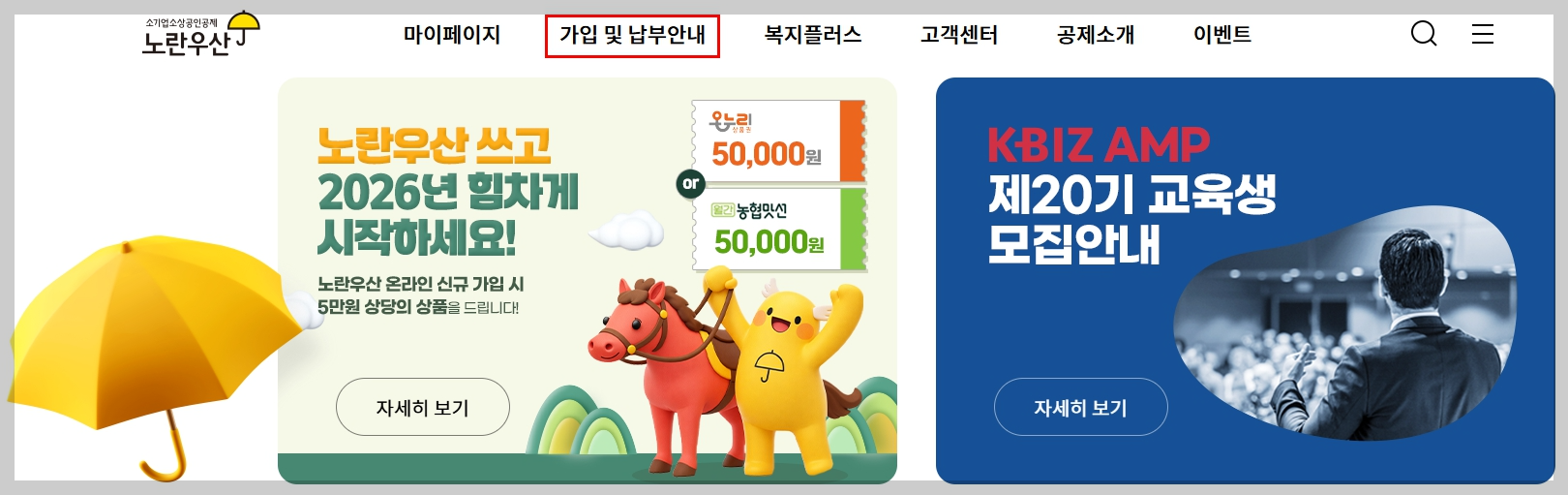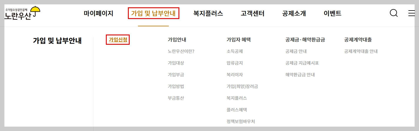 노란우산공제회 홈페이지 기능