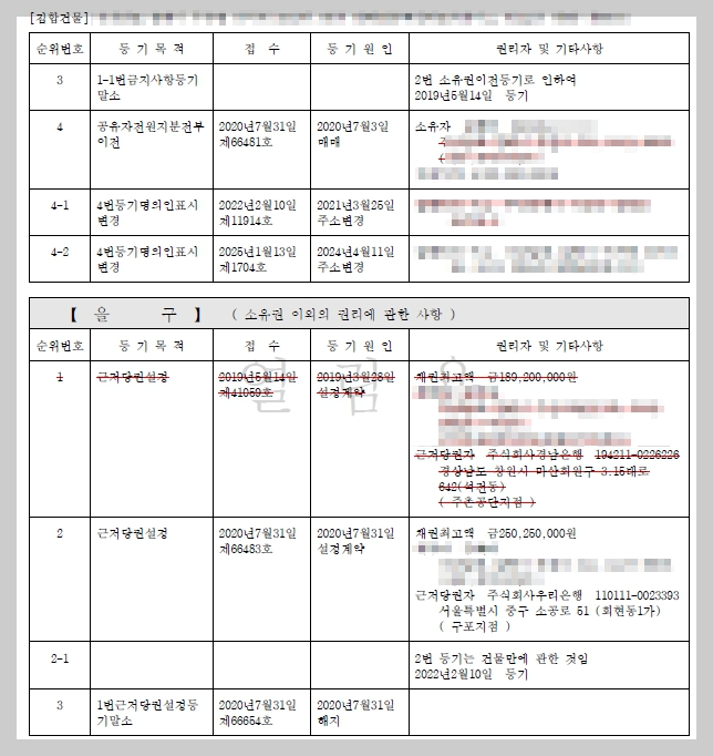 갑구에는 소유권의 변동 이력이 기록됩니다.