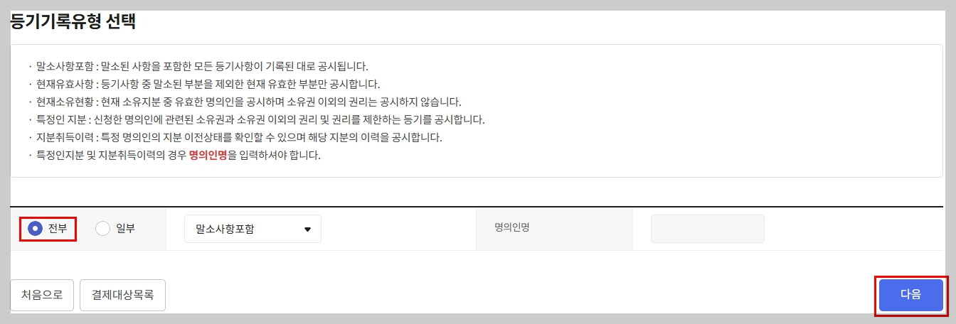 과거 근저당이나 압류 기록까지 확인하려면 반드시 “말소사항 포함” 옵션을 선택해야 합니다. 이는 향후 분쟁 예방에 매우 중요합니다.