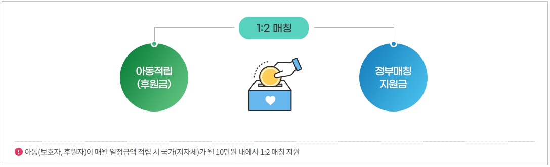 - 아동 또는 보호자가 일정 금액 저축
