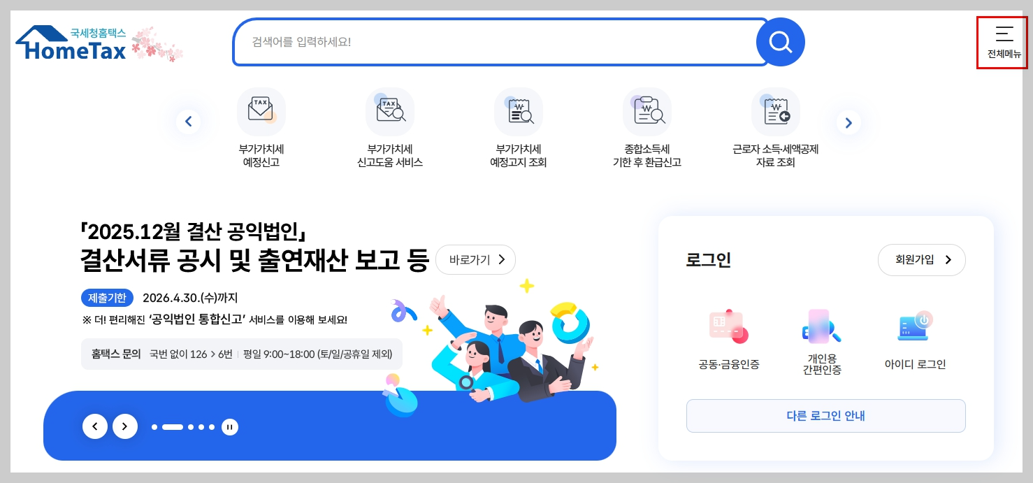 - 국세청 홈택스 접속