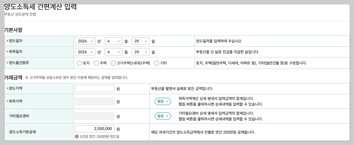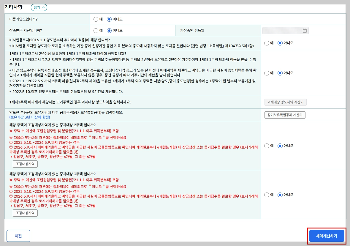 양도소득세 자동계산 주의사항