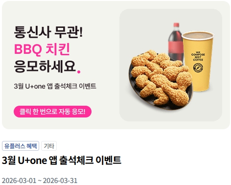 유플투쁠은 단순 이벤트가 아니라 생활비 절감과 앱테크를 동시에 잡을 수 있는 구조입니다. 특히 3월은 혜택 밀도가 가장 높은 시기로, 스타벅스·배달·쇼핑 할인과 퀴즈 리워드까지 모두 활용하면 체감 절약 효과가 매우 큽니다. 지금 바로 참여해 보시길 추천드립니다.