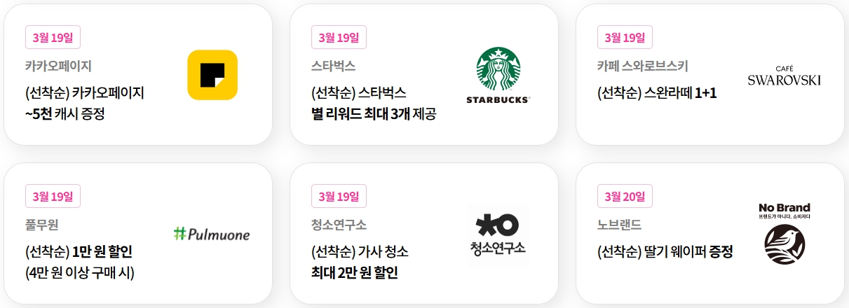 - 인기 혜택은 1~3분 내 마감
