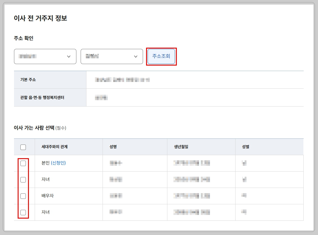 - 세대 구성 방식 선택: 기존 세대 유지, 세대 합가, 세대 분리 중 선택