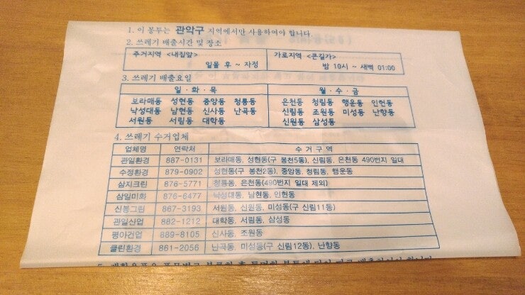 예: 김해 → 반드시 김해시 봉투 선택
