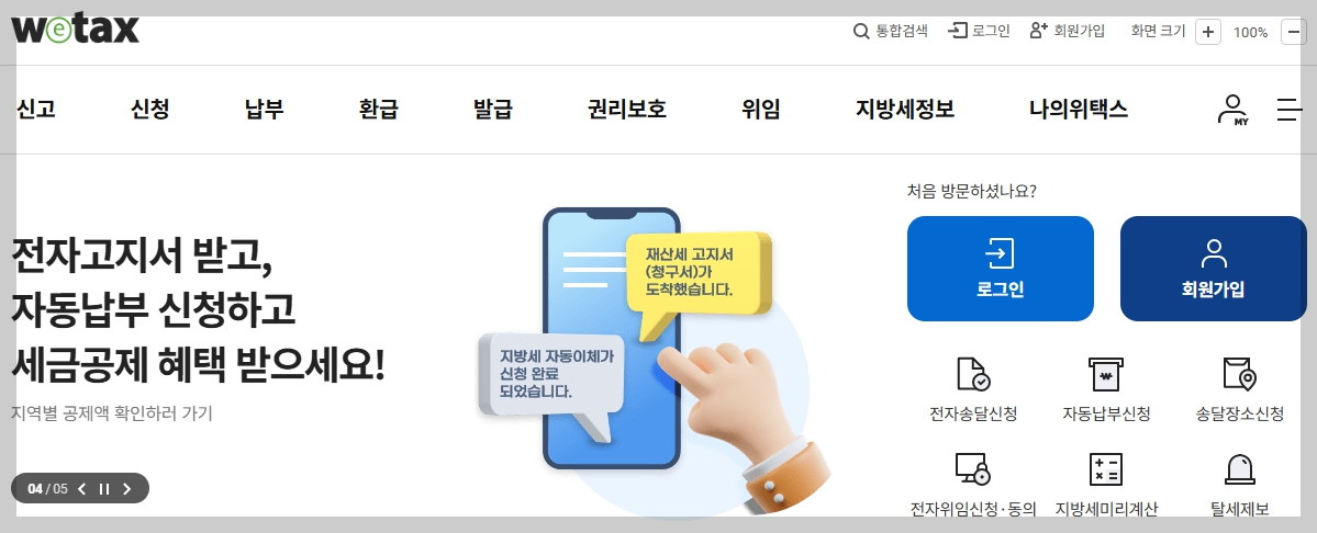 먼저 위택스 홈페이지에 접속합니다.