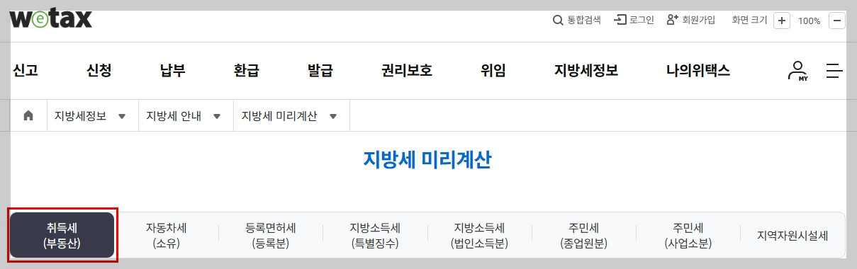 - 취득세(부동산) 선택